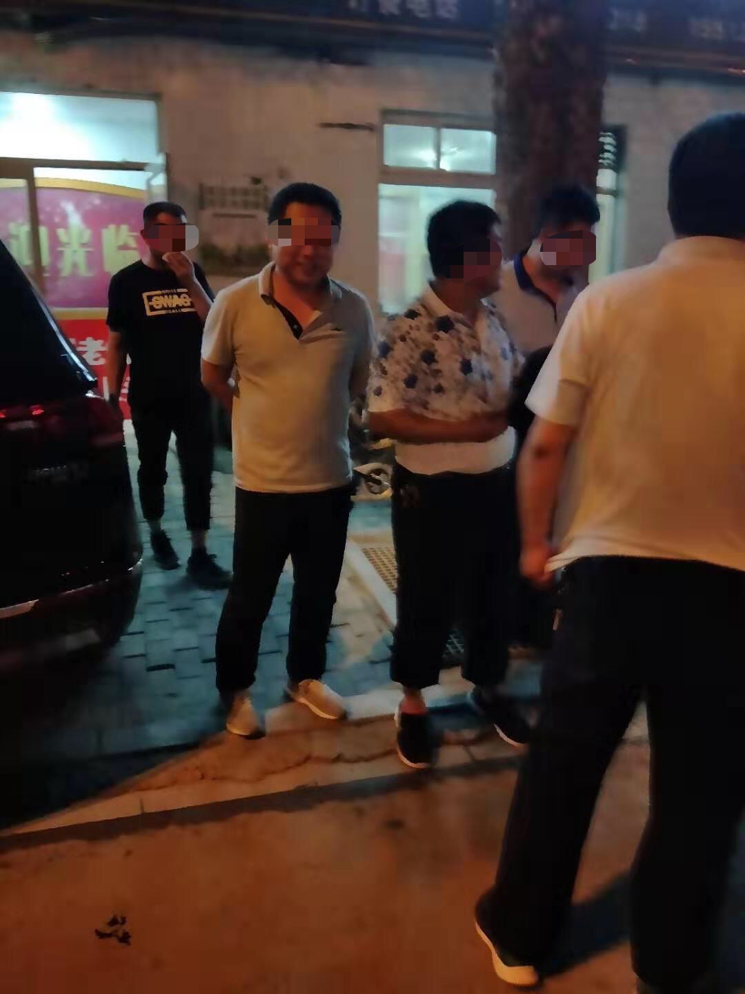 事发当日,张某红拍摄“一些公务人员聚集在饭店门口”的照片,正面朝着镜头背着双手的为赵广全。受访者供图
