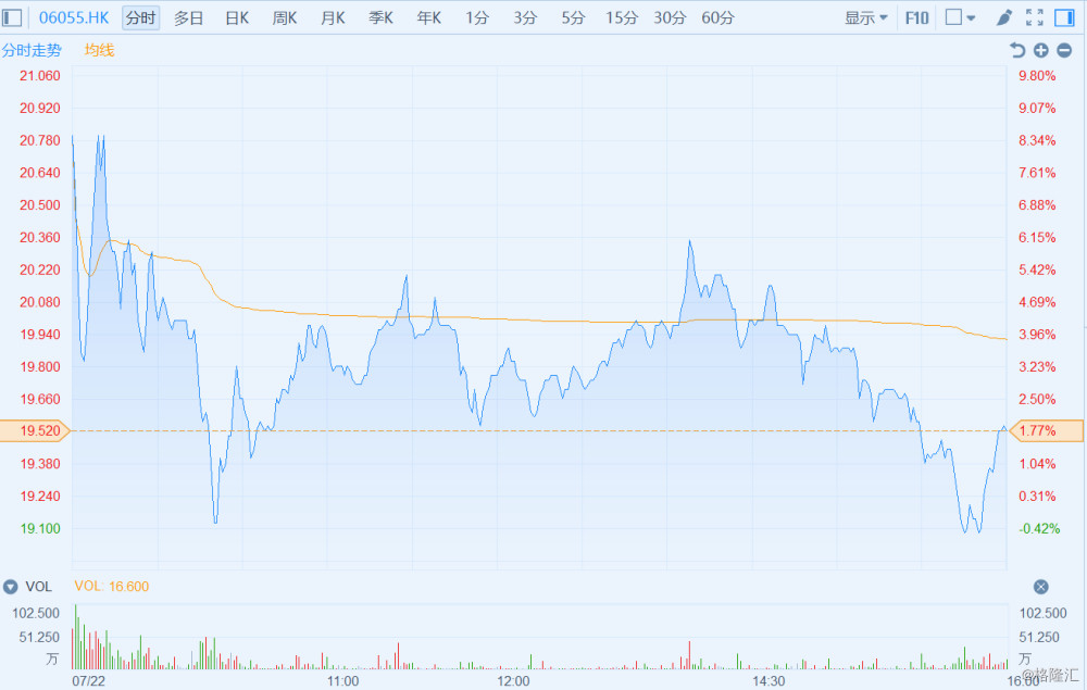 早盘一度涨9%至20.9港元的中烟香港(6055.HK)尾盘出现明显回调走势,最终收报19.52港元,涨幅收窄至1.77%,全天成交6.59亿港元,最新总市值135亿港元,距6月12日IPO价4.88港元仍有高达300%的涨幅。