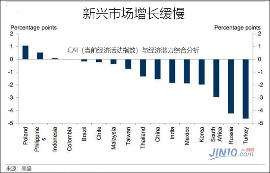 至于新兴市场方面,遭遇到的困境就更加明显了。高盛指出,在核心经济体缺乏上行动力、经济架构多年未有明显改善的情况下,许多新兴经济体已陷入增长瓶颈,今年的增长速度也远低于高盛对其长期潜力的预估。