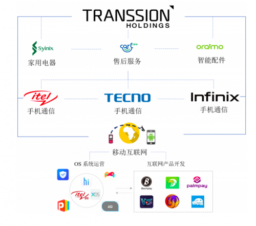 根据传音控股招股书显示,报告期内,传音主要从事以手机为核心的智能终端的设计、研发、生产、销 售和品牌运营,主要产品为TECNO、itel和Infinix三大品牌手机,销售区域主要集中在非洲、南亚、东南亚、中东和南美等全球新兴市场国家。