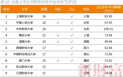 11财务总监:多出身财经院校会计专业,上财系人多,央财系薪酬高