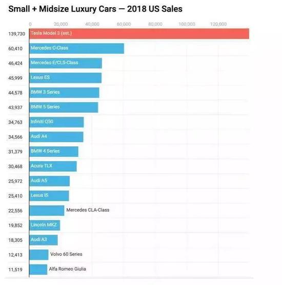 2017年7月,特斯拉开始交付Model 3,如今Model 3已经成为特斯拉销量的利器——2018年全年,Model 3销量将近14万辆,位列北美豪华品牌之首。