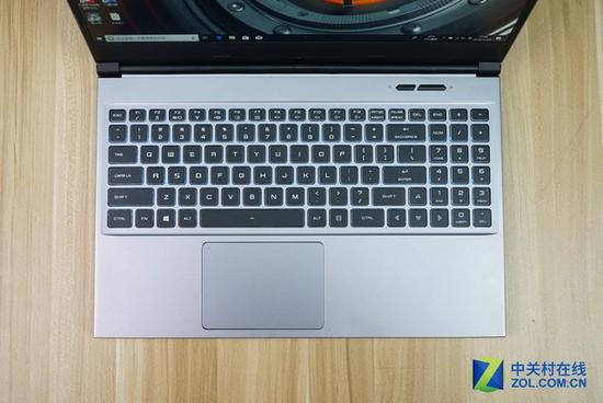 机械革命S1 Plus的C面布局看起来十分清爽,虽然采用了窄边框,但机械革命S1 Plus仍旧提供了小键盘区,这对于用户的实际使用非常有帮助。机械革命S1 Plus的键盘支持全彩背光,能够根据消费者的需要和喜好进行调整,键盘的按压反馈感良好,键程使用,能够胜任工作中的文字输入需要。