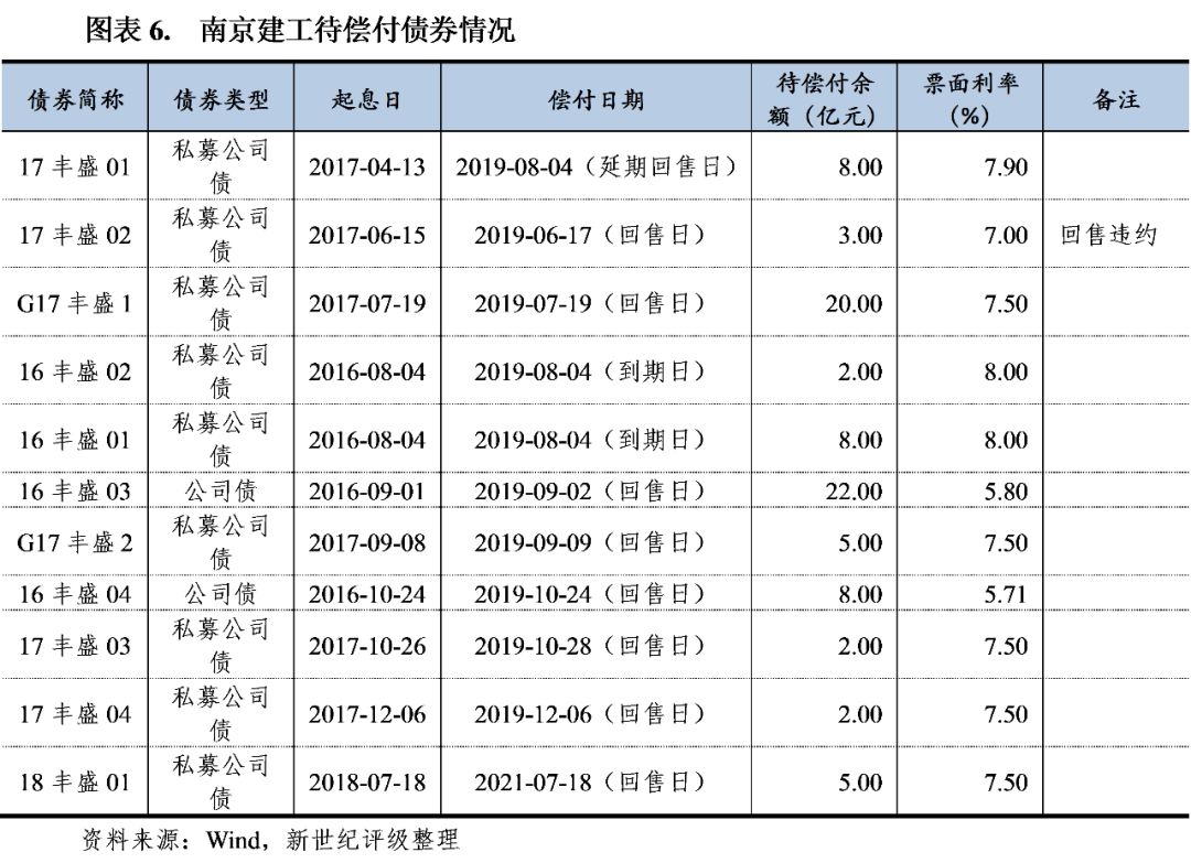 6月15日,南京建工产业集团有限公司(简称“南京建工”)私募公司债券“17丰盛02”回售与付息违约。此前,南京建工另一支私募公司债券“17丰盛01”本应于4月14日回售,发行人与投资者达成延期协议,回售期延长至8月4日。截至违约时,发行人待偿付债券共11支,本金余额共85亿元。