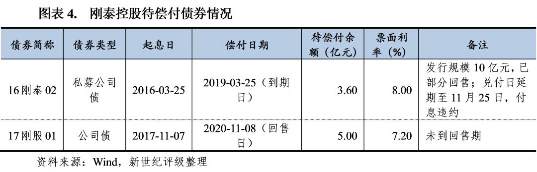 违约事件概况6月11日,甘肃刚泰控股(集团)股份有限公司(简称“刚泰控股”)私募公司债券“16刚泰02”付息违约。“16刚泰02”应于3月25日到期兑付,发行人与投资者达成协议,债券本金兑付日延期至不晚于11月25日,但发行人由于未能偿付利息,仍构成实质性违约。截至违约时,刚泰控股待偿付债券共2支,本金余额共8.6亿元。