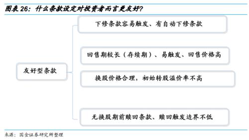 回售条款:保护投资者权利的条款,它可以使得投资者在股价长期低迷时通过回售来降低损失,回售条款的保护程度要看触发条件的设定、回售期、回售价格等,回售条款的设定能在一定程度上反映出发行人的态度。