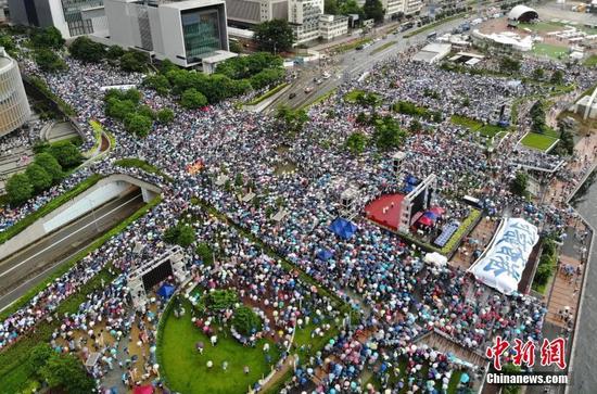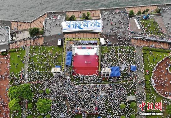 “守护香港”“香港加油”“香港警察,我们支持你”……20日,香港大雨倾注,金钟添马公园依然人山人海。逾31万名来自各行各业的香港市民扶老携幼,无惧风雨参加“守护香港”大会,用和平理性方式表达共同的诉求——不要暴力、不要撕裂;要法治、要和平、要安定、要团结!