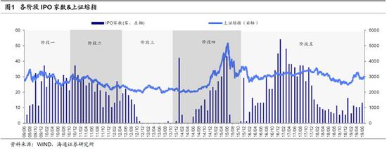 ① 阶段一(2009/6/10-2010/10/11):2009年6月10日,证监会发布《关于进一步改革和完善新股发行体制的指导意见》,正式启动新股发行体制改革,内容包括提高新股定价的市场化程度,放开市盈率管制,同时将网下网上申购参与对象分开,并设定单一网上申购账户的申购上限。
