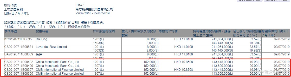 据悉,在艾默生的沽空报告中也指出,最近,招银国际金融在市场上以每股11港元的价格出售了16万股南方能源股票。据交易披露,招银国际金融之所以处置这些股份,是因为徐波无法偿还债务。披露易显示,招银国际及招商银行股份有限公司最新持股比例为19.98%。