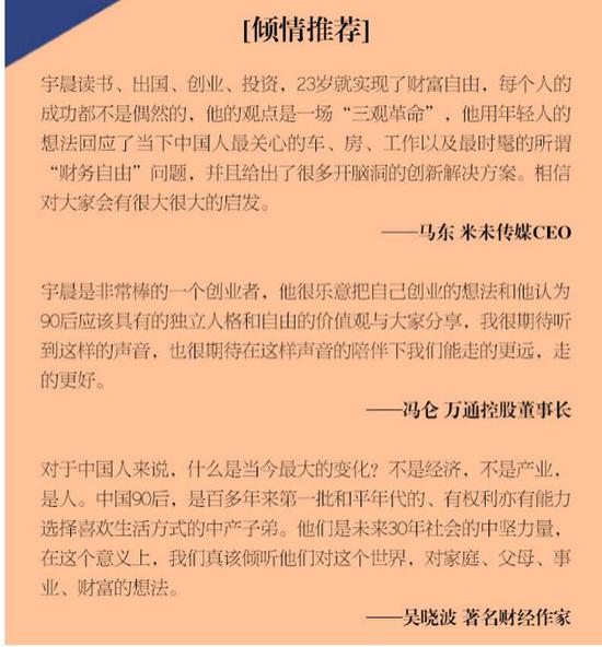 2016年,孙宇晨推出音频课程《财富自由革命之路》时,宣传中也提到:“马东、吴晓波、冯仑、陈鲁豫力荐!”
