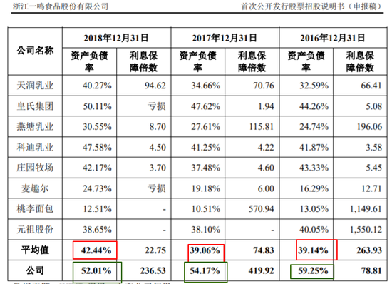 但一鸣股份的资产负债率高于同行。2016-2018年,一鸣股份的资产负债率分别为59.25%、54.17%和52.01% ,虽有降低的趋势,但依然高于同行公司平均水平。报告期内, 一鸣股份可比同行公司资产负债率的平均值分别为39.14% 、39.06% 和42.44%。