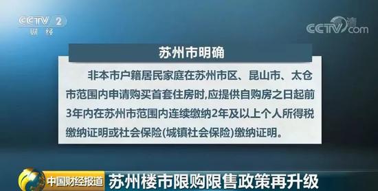 限购方面,苏州市明确,非本市户籍居民家庭在苏州市区、昆山市、太仓市范围内申请购买首套住房时,应提供自购房之日起前3年内在苏州市范围内连续缴纳2年及以上个人所得税缴纳证明或社会保险(城镇社会保险)缴纳证明。