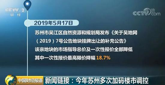 5月17日,为了降温土地市场,苏州市吴江区自然资源和规划局发布《关于吴地网(2019)7号公告地块挂牌出让的补充公告》,该宗地块的市场指导总价及一次性报价全部降低,其中一次性报价最高限价降幅为18.7%。