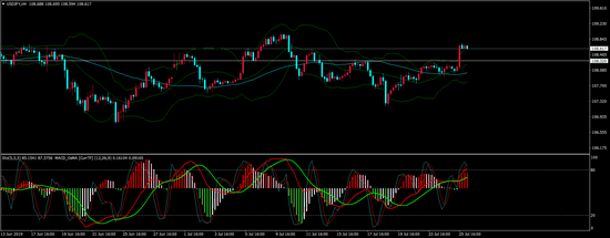 5M:昨日突破108.10一线偏多,至收盘涨势缓和,MACD零轴上方略有背离,日内下方关注4H前支撑,短线逢低做多。