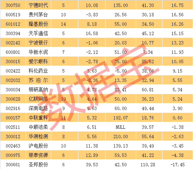 从市值角度看,大市值股居多,贵州茅台市值超万亿,海康威视、温氏股份、保利地产等多只个股市值超过千亿。仅4股市值不足百亿,包括天孚通信、祁连山、钢研高纳、麦格米特。