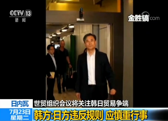 据报道,韩国产业通商资源部新通商秩序战略室室长金胜镐作为韩方首席代表出席23号到24号在日内瓦举行的世贸组织总理事会会议,阐明韩方就日本出口管控措施的立场,敦促日方撤销相关措施。金胜镐说,日方的措施公然违反世贸规则,希望日方不要再错上加错,将韩国排除在贸易“白色清单”之外。他还表示,将视会议情况再考虑向世贸组织提出申诉一事。