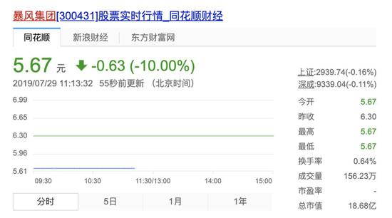 7月29日,暴风集团开盘一字跌停,为5.67元/股,目前市值18.68亿元。