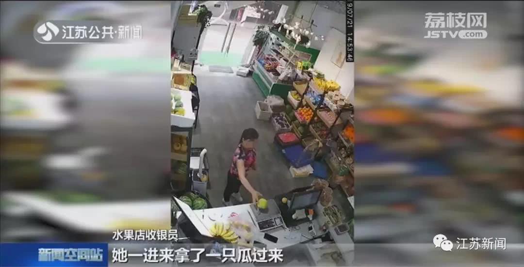 女子挑了一只瓜问收银员价格,收银员告诉她8.8元,她给了100元。