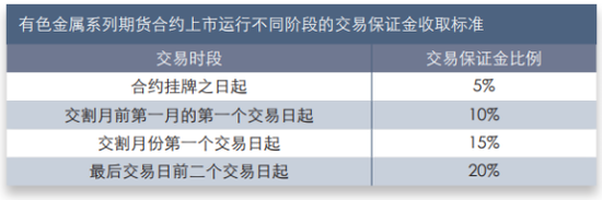 2、 有色金属系列期货合约上市不同运行阶段的交易保证金收取标准