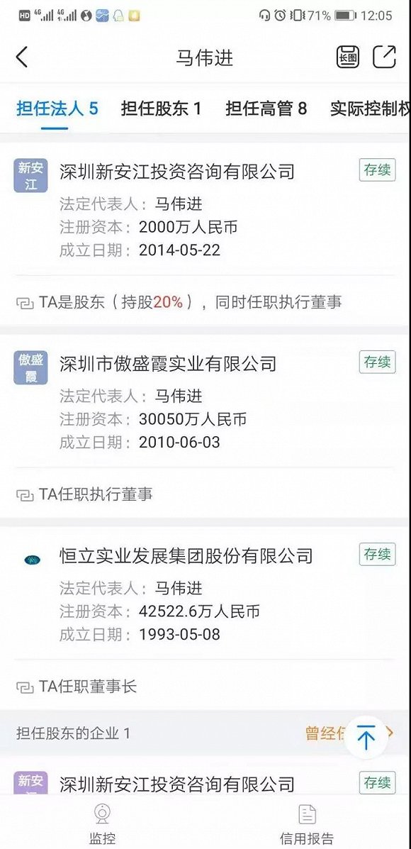 据天眼查信息显示,1972年出生的现任董事长马伟进参军退伍后进入湖南湘潭县公安系统任职,2013年开始担任湘潭市体育局经济科科长,2015年辞去公职,随后担任傲盛霞法人代表兼董事。2016年8月开始任职恒立实业法人代表和董事长。目前,马伟进担任5家公司的法人代表,在掌握恒立实业之前,已掌握6家公司的实际控制权。