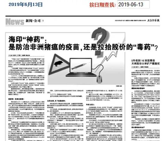 所谓的“今珠多糖注射液”,究竟是预防猪瘟的“神药”,还是拉抬股价的“毒药”?对此,深交所很快向海印股份下发问询函,要求公司补充披露有效数据的具体来源,是否有官方证明或其他支持文件,并结合主要原料来源、研制过程等,分析说明今珠多糖注射液是否符合疫苗的医学定义,是否属于“非洲猪瘟”防治疫苗等问题。