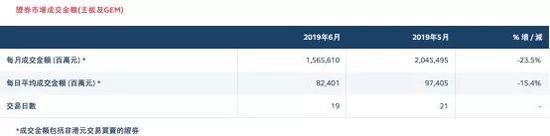 不过值得注意的是,今年5月和6月,港交所主板及GEM市场的月成交金额分别为2万亿和不到1.6万亿元人民币,每日平均成交金额为974亿和824亿元人民币,折合142亿和120亿美元。