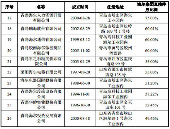 海尔集团旗下资产不少,直接持股的就包括海尔电器国际股份有限公司(下称海尔电器国际)、青岛海尔投资发展有限公司(下称海尔投资)等26家公司。