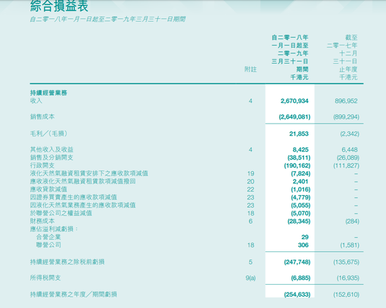 新浪财经讯 7月25日消息,中国天然气集团有限公司(00931)发布2019年年报公告,截至2019年3月31日,集团毛利2185.3万港元。