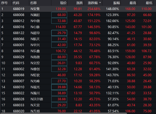 Wind数据显示,科创板首批25家公司合计成交额已突破百亿大关。日前,N安集大涨255%,N澜起大涨174%。不过,由于触发30%涨跌幅限制,上交所公告:科创板上市公司杭可科技、瀚川智能、虹软科技、睿创微纳、交控科技、嘉元科技、天准科技、中微公司临时停牌。