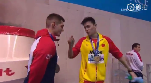 而孙杨则在领奖台发出怒吼——“我是冠军,你是个失败者”回应了斯科特·邓肯的不尊重行为。
