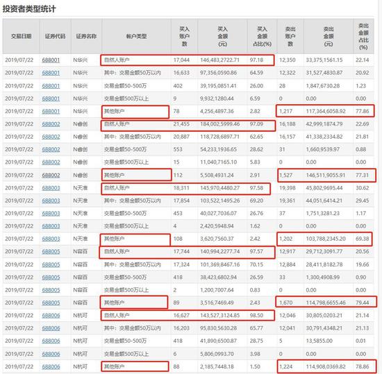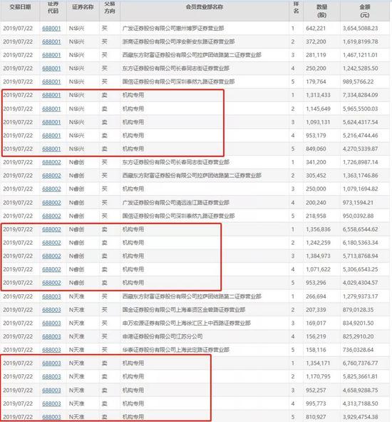 上交所披露了全部25只科创板新股的龙虎榜信息和买卖的投资者类型信息。