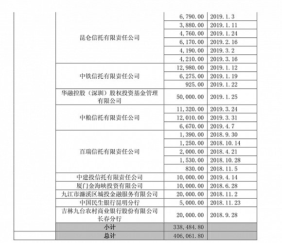 4月18日,其逾期未偿还项目金额达到了40.61亿元,涉及多家信托、基金以及银行。