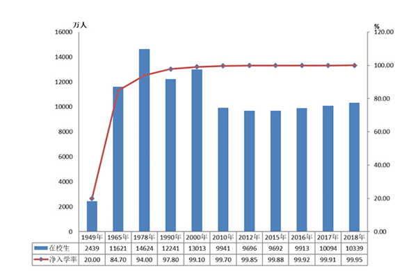 小学在校生和净入学率。教育部官网 图