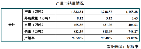 据中国钢结构协会钢管分会显示,2006 年至 2018 年,友发集团连续13年焊接钢管产销量排名全国第一,并连续 13 年位列中国企业500强、中国制造业企业500强。2016年至2018年,友发集团钢管产量分别为1158.38万吨、1248.87万吨、1333.34万吨;外购数量分别为3.65万吨、5.12万吨、8.12万吨;销量分别为748.27万吨、818.69万吨、882.39万吨。友发集团最近三年公司年生产量已达千万吨,产销率均超过了99%以上。