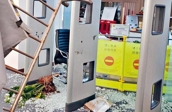 1日,不法分子闯入香港立法会大楼,砸毁楼内设备,并在墙壁上乱涂乱画,造成大面积破坏。