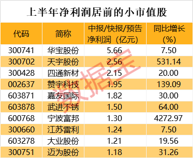 随着半年报逐渐披露,小市值股票的盈利情况已逐步浮现。数据宝统计显示,截至昨日,在流通市值不足20亿元的个股中,有29只股公布了半年报,503只发布了业绩预告。