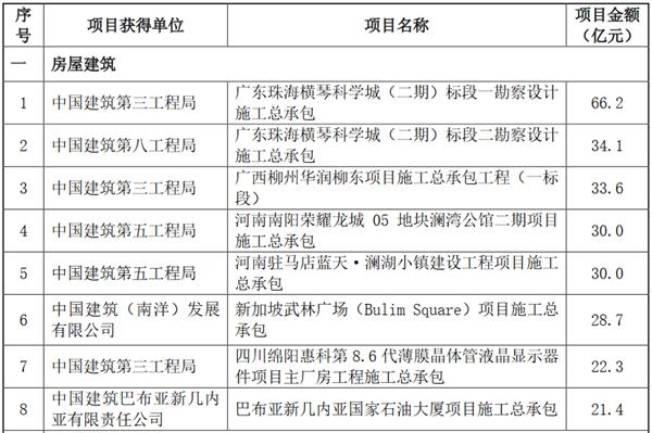原标题:中国建筑:获得8个房屋建筑项目 总计266.3亿元