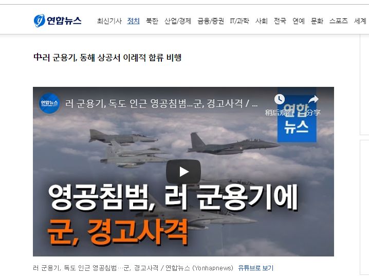 韩联社称,这是俄军机史上首次“侵犯韩国领空”。