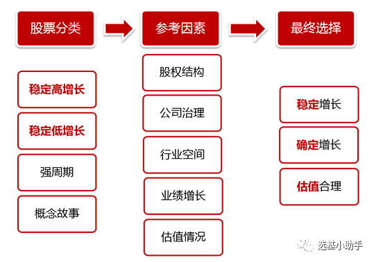 对于寻找最合适自己的投资方法,我一直坚持选股才是制胜之道。市场纷纷扰扰,很多投资思路和理念可能短期赚钱,但是可能无法持续赚钱;还有很多投资理念和思路只能赚一次钱,下一次可能就会输个精光。把时间线拉长,基金年度净值的增长是由每周净值复合增长决定的,而每周净值增长又是由组合中股票每日的价格表现决定的。如果以分钟为单位观察股价,每一秒都是惊涛骇浪;可问题在于,我们热衷讨论的行业涨幅、大小盘风格轮动、市场情绪等短期因素都是不确定的,唯有实实在在的业绩稳定增长,才是股价持续上涨的“源动力”。就像白酒板块的龙头股,之所以从2001年8月上市至今市值增长107倍,对应的是利润增长137倍。市场上越来越多的“爆雷”事件则告诉我们,没有持续稳定业绩支撑的股价炒作终不过是空中楼阁、昙花一现,最终会在喧嚣中回归“地平线”。寻找业绩稳定、增长确定、估值合理的好公司是不是只能通过财务报表后知后觉?显然不是,对于好公司的甄选,其实并不难,虽然象限、规则有很多种,但其实万变不离其宗。