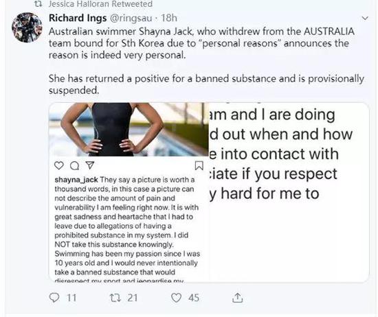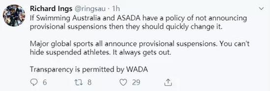 这则贴文也被几名关注此事的澳大利亚的记者进行了转发,因为他们同样不理解为何澳大利亚泳协要撒这个谎。