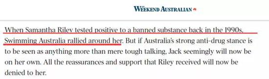 目前,从澳大利亚媒体的最新报道来看,澳大利亚泳协似乎也在配合这种给莎娜·杰克开脱的套路:即一边“大事化小、小事化了”地宣称这件让澳大利亚在全世界面前丢人的事情是泳协的管理失误,应该及早对外界通报,不该让其他队员蒙在鼓里;一边则强调在案情明确前,莎娜·杰克应该享有“无罪推论”的待遇。