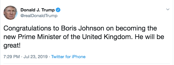 据CNN报道,在约翰逊还在担任外交大臣时,特朗普就对他称兄道弟,并且耿直预言约翰逊将会是一名好首相,当时特雷莎·梅还未请辞。