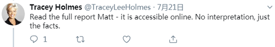 面对所有质疑她过度解读报告的话,Tracey都只回了一句:报告全文网上可获取,请自己读一遍。