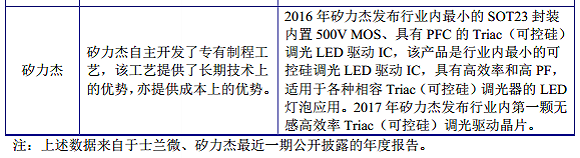 据晶丰明源说明书展示,矽力杰股份掌握了“专有制程工艺”,在产品尺寸及成本上具有优势。