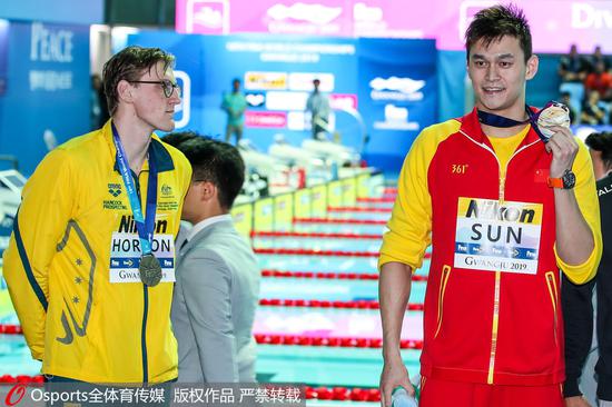 对比霍顿的表现,孙杨依旧稳健。