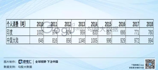我们可以看到,中国和印度的消费量都比往年低,中国的需求基本上不增长了。