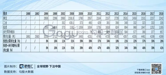 笔者在下文中主要引用World Gold Council(WGC)的数据,该组织后续年度经常对往年数据进行修正,但是总体趋势是可以看出来的。
