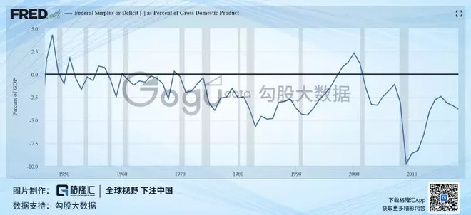 《华尔街日报》在2019年6月14日的一篇报道中提到,80、90年代美国决策者担心财政赤字的长远影响,如今已经完全温水煮青蛙了。美国经济虽然已经从2008年金融危机恢复了,但财政赤字占GDP的比率依然偏高,2018年的绝对金额依然有近8000亿美元。