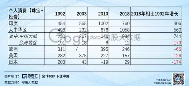 个人的黄金消费量变化的主要是消费的结构,体现为发展中国家的需求上升而发达国家的需求下降的特征。