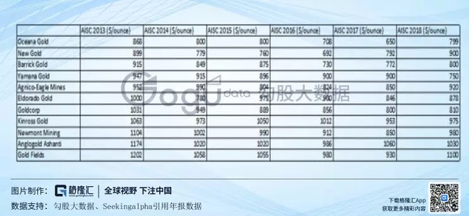 这个数据可以在一些主要金矿矿山年报中得到验证:
